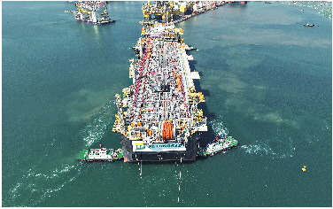 据介绍,浮式生产储卸油装置(FPSO)P80船体总长345.3米、宽60米,总重量超9万吨,是目前国内船厂承接建造的最大FPSO之一,中集来福士负责船体、生活楼和部分模块的设计建造工作。