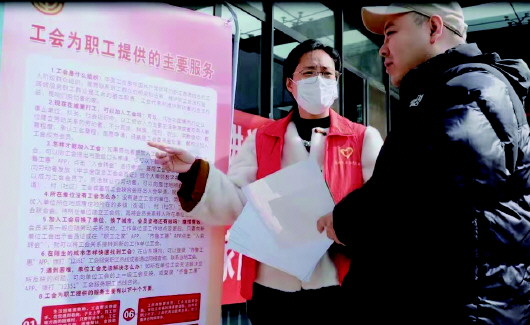 在“新”字上求突破,提升入会服务“精准度”。在建会入会工作中,威海各级工会紧盯新就业形态劳动者等重点群体,联合平台企业定制“一站式入会”服务,简化入会流程、现场审批办结,形成“入职即入会”工作闭环,让职工入企有归属,共发展会员532人。如威海经区总工会联合行业党委,面向外卖配送员开展暖“新”行动,定制“入会即享”服务包,打造全周期服务模式,不断增强工会吸引力。威海市总工会还通过组建“劳模工匠+工会干部”宣讲团,分片包干深入职业院校、工业园区和商圈楼宇等,开展专题宣讲和“班前十分钟”微宣讲18场,有效提升了工会组织社会影响力。威海高区总工会还创新构建“镇街-社区-网格-企业”小四级工会网络,通过镇街总工会统筹调度、社区工会联合会枢纽衔接、专职网格员摸排跟进,形成“网格摸排-社区建会-镇街指导”的闭环机制,吸纳新业态职工、小微企业职工、个体工商户等近千人入会,并定制入会礼包,将工会组织及服务覆盖至基层“神经末梢”。