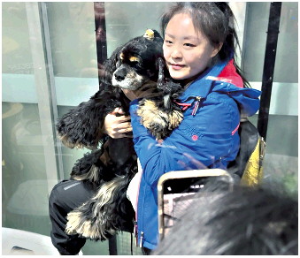 旅客崔女士和她的宠物狗“Follow”同乘高铁到达济南。