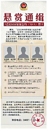 为依法严厉打击境外势力对我国网攻窃密犯罪,切实维护国家网络空间安全和人民生命财产安全,哈尔滨市公安局决定对上述3名犯罪嫌疑人进行悬赏通缉。发现有关人员线索可立即向公安机关举报。