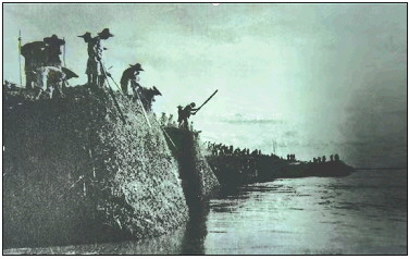 曾是韩培诚警卫员的张绍林也参与了这次抢险,负责备案物料的卸船转运,日夜工作经常顾不上睡觉。有一次他困得实在撑不住,竟在柳料树枝上睡着了,该处河滩发生坍塌,差一点掉入洪水中。
