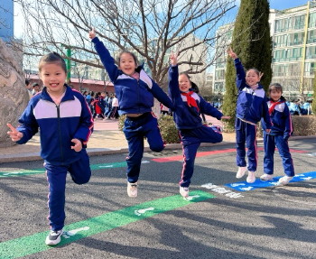 来到操场,低头看,处处是教育!操场边,五彩的“数学跳格子”让孩子们在游戏中练习口算;花坛旁,“拼音跳房子”用声母、韵母串联起趣味闯关;教学楼道路上,“体验长征路”将体育与思政巧妙结合,孩子们边跳边识历史、润人心;楼道口,二十四节气变成了快乐的跳格子,孩子们在玩中学习了传统知识。