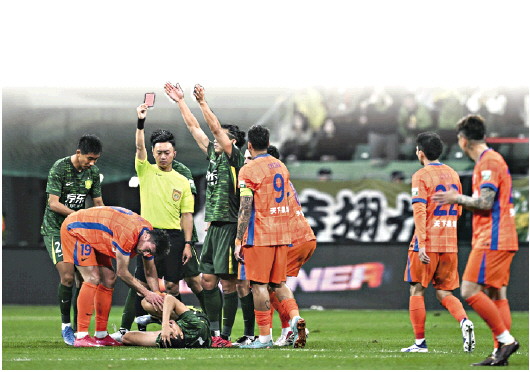 4月19日晚,山东泰山在客场1:6不敌北京国安,吴兴涵与泽卡的两张红牌让泰山积攒的一点优势荡然无存,最终在国安攻击群的重压之下迎来一场惨败。红牌是失利的导火索,但是背后的球员情绪管理,也应该得到加强。