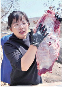 在山顶,王丽举着手机直播羊群。面对镜头,她将自己的产品一遍一遍地介绍给网友,同时,手中的小刀一刻也没停,刀尖经过之处,手里的肉只留下了精肉。她知道,屏幕那头的14万粉丝里,有程序员等着抢购现杀的羊肉,有北上广的宝妈盯着刚露头的苹果花苞。