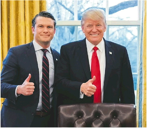 赫格塞思坚称,他与特朗普“谈过”,将继续保持立场一致。