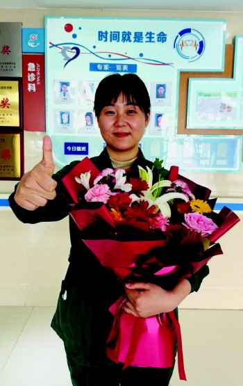 4月18日上午,聊城市中心医院急诊科内,被救女孩的父亲张先生(化名)手捧着写有“见义勇为施援手,救人危难暖人心”的锦旗和一束鲜花,满脸感激地走向护士孟慧丽。他紧紧握住孟慧丽的手,激动地说道:“好人一定要感谢的,因为她救了咱孩子,千言万语都表达不了我的感谢。”
