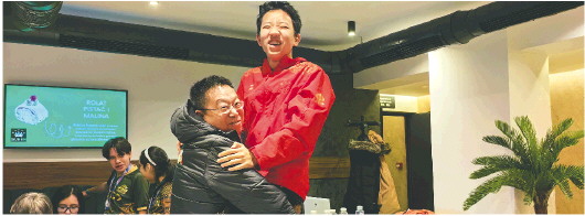 姜昊辰(上)夺冠后,被教练激动地抱起来。 济南国际象棋协会供图