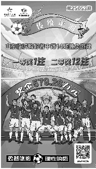 4月7日,传统足彩14场胜负第25053期开奖,当期一等奖全国仅开出3注,单注奖金500万元,临沂一购彩者摘得其中1注一等奖,加上12注二等奖,收获奖金5792612元。