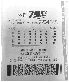 4月20日晚,体彩7星彩第25043期开奖,开奖号码为“0 3 0 8 5 7+11”,当期全国中出2注二等奖,单注奖金2066355元,其中1注花落山东省济南市。