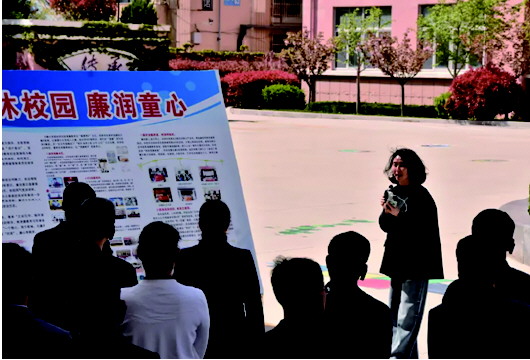 长峰小学党支部书记、校长江丽娜同志为观摩团介绍了学校基于“本根教育”特色,秉承“正向引导、循序渐进、整体推进”的工作思路,全面实施“一个核心、两个阵地、五廉并举”的“125”工程,扎实推进清廉教育与学校工作的深度融合。