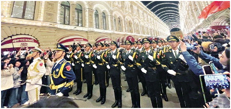 当地时间5月3日晚,俄罗斯首都莫斯科,俄罗斯纪念卫国战争胜利80周年阅兵式第二次彩排,中国人民解放军仪仗司礼大队震撼亮相,受到华侨华人、留学生和当地民众热烈欢迎。