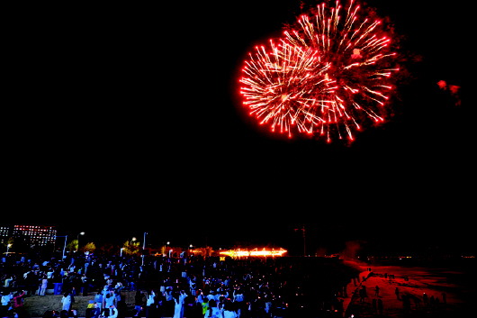 盛大的烟火,吸引游客纷纷驻足拍照。王金方 摄