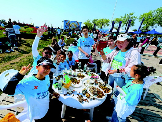 选手赛后享受肥美的乳山牡蛎。宋晓宁 摄