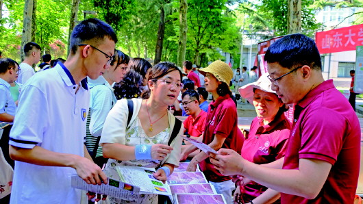 2023年6月,山东大学联合齐鲁晚报举行校园开放日,学生和家长在现场咨询。