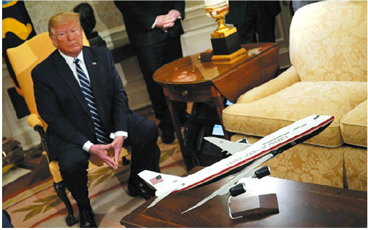 2015年,美国空军选中波音747-8型客机作为总统专机的新机型,将替代1990年启用、由波音747-200型改装的两架“空军一号”。特朗普2016年首次当选总统后批评波音公司在这一改装项目中的要价“离谱”,超过40亿美元,威胁要取消订单。经过特朗普本人亲自“砍价”,波音公司于2018年获得这份价值39亿美元的合同。当时,特朗普曾希望新专机能在2021年交付,并要求改变“空军一号”的传统蓝白涂装,改用红白蓝的新涂色方案。