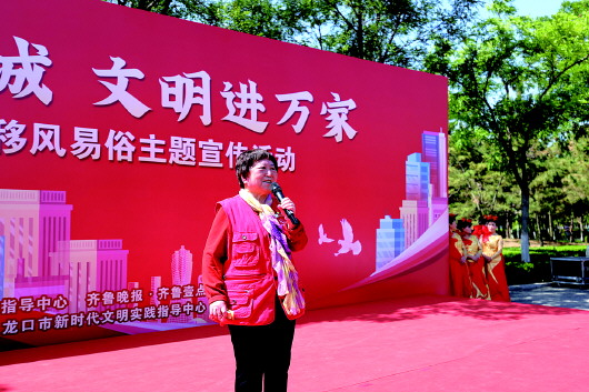 婚姻幸福,始于真诚,成于文明。5月18日,“新风润港城 文明进万家”2025年烟台市移风易俗宣传活动在龙口市林苑公园盛大启幕。在“礼轻缘重”婚俗新风践行展示会环节,龙口公益红娘韩思惠现场分享26年“牵线路”的点滴,从为青年男女牵线搭桥到倡导新式婚礼再到追踪做好婚姻关系的“摆渡人”,她和她组建的爱心奶奶义务红娘队共帮助500余对青年男女喜结良缘。