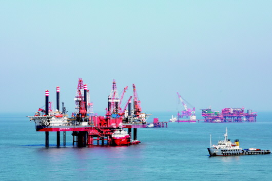 近日,胜利油田海上施工船舶正在配合技术人员,对埕北22F平台化学驱油井进行检修作业。胜利油田在海上埕北22F平台化学驱先导试验实施过程中,持续抓好全过程质量管控,项目增油效果好于预期。截至目前,海上化学驱累计产油180余万吨,增油80余万吨,采收率提高6.7%,成为海上油田增储上产“撒手锏”。
