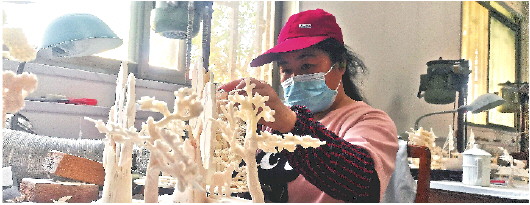 尽管有雕刻手艺,但赵光兵之前很少接触牛骨雕,很多技艺手法都是一边干一边摸索。“先是花了好几个月,探索牛骨去油、漂白、干燥的流程。另外,牛骨的硬度大、韧性小,雕刻时要注意下刀力度。”赵光兵说。