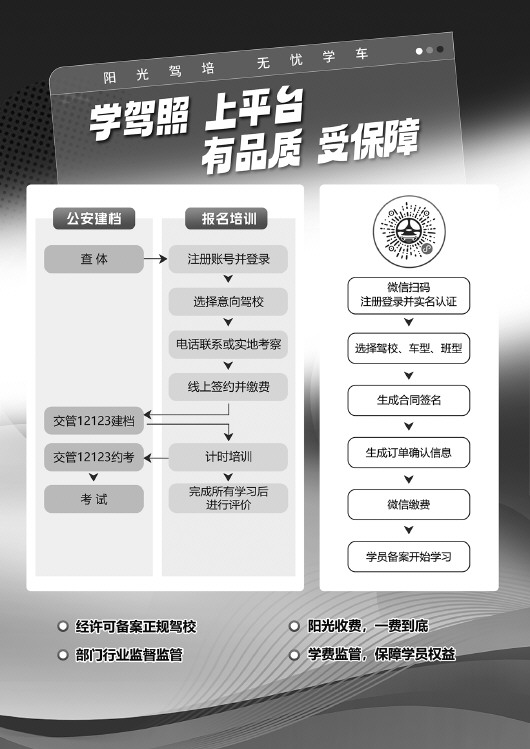 目前,平台已完成开发,全市正规许可或备案的驾校已有94家入驻平台,今天上午9点,平台已正式上线试运行,面向全市学员群体,提供阳光、优质、安全、便捷、有保障的驾培服务。