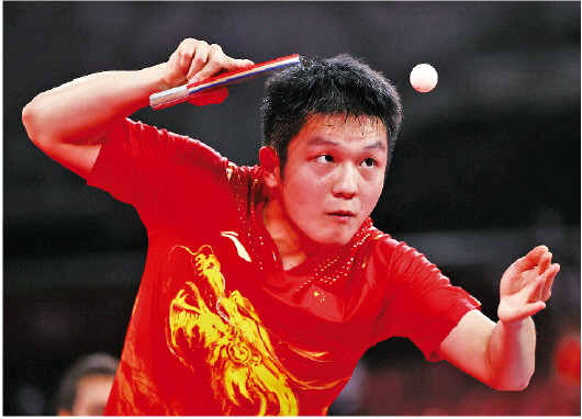 樊振东在比赛中发球。(资料片) Ic photo供图