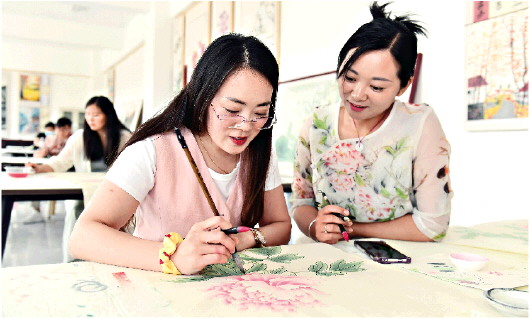6月2日,在巨野县龙堌镇龙海书画院,农民画师在探讨交流工笔画创作。近年来,“中国工笔画之乡”——菏泽市巨野县积极发展乡村文化创意产业,设立专项资金扶持书画创作,并开展农民画师免费培育工程。目前,巨野县有8个绘画专业镇、50个绘画专业村、65家基层画院,工笔画已成为当地乡村振兴的新引擎。 新华社发