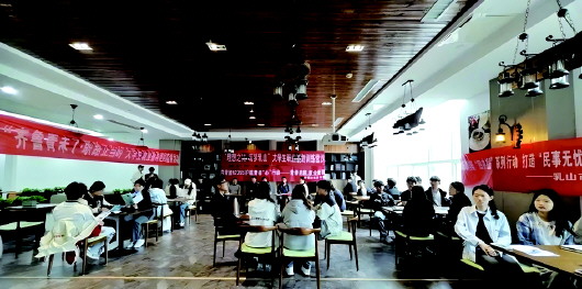 政策解读环节:乳山市人社局公共就业和人才服务中心高校毕业生服务科、就业失业服务科相关负责人为大学生解读青年人才引进及毕业生档案相关政策,团市委为大学生们介绍了青鸟计划活动和青年人才驿站相关服务。