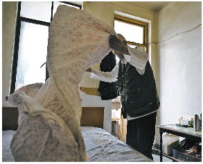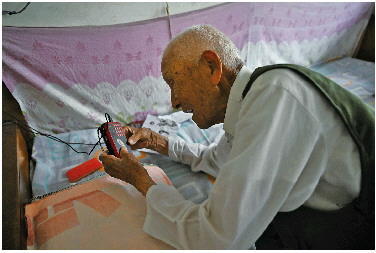 床头的收音机是老人平时的爱好之一,他最爱听的是新闻。