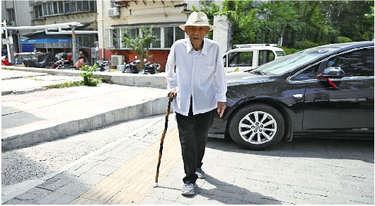 老人除了眼睛看不太清外,耳朵几乎不聋,走路十分稳健。他家住四楼,每天上下楼梯出门遛弯,雷打不动。“我早上五六点钟起床,起来先下楼转一转。”郭有忠向记者介绍了他每天的日常,“吃完早饭后再出门,上午要在外面待两三个小时,溜达溜达串串门儿,和老人们聊聊天。中午回家吃过午饭,下午还要在外面待两三个小时……”怪不得居委会的工作人员都找不到他人影儿,每天在户外长达五六个小时,这是很多老人都做不到的,更何况是百岁老人呢。