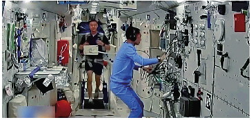此外,乘组利用超声诊断仪,对血管进行超声检查,获取不同在轨时长下的血流动力学参数,用于开展相关研究。乘组还使用精细动作测量仪和相关实验软件,开展了记忆滑动测试、力量测试与重物测试,为微重力条件下精细动作控制的变化规律和认知机制研究积累数据。
