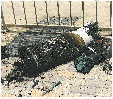 6月23日在卡塔尔一处街道拍摄的伊朗导弹残骸。卡塔尔防空系统当天成功拦截针对乌代德空军基地的导弹袭击。 新华/法新