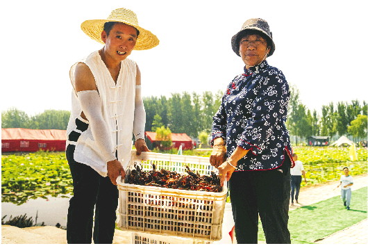 如今,高楼乡越来越多的养殖户选择套养小龙虾,“藕虾共生”养殖模式成为微山县渔业转型升级的一个亮点,也是村民致富的首选项目。“今年第一波小龙虾开始上货时,高楼乡一天的量就可以达到4万斤,大青批发价19元/斤,中青14元/斤,藕田虾比普通虾每斤要贵5-8元。”牟长平介绍,目前高楼乡小龙虾养殖户达3000余户,在这种养殖模式下,产业链还延伸出藕粉、荷叶茶等多类衍生产品,构建“一水双收、三产融合”的增值链条。