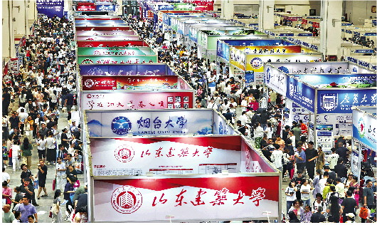 6月26日,山东高招会在山东国际会展中心举行。每个高校展位前都围满了考生和家长,里三层外三层,场面十分火爆。 记者 王鑫 王媛 张中 摄