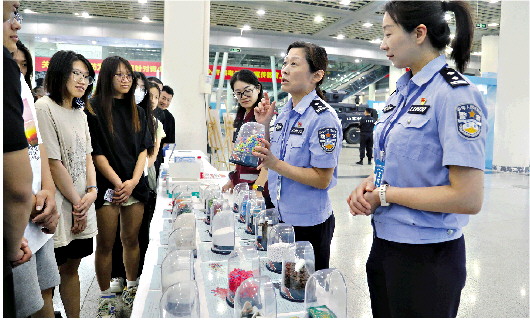 6月26日,在“禁毒清源 齐鲁答卷”山东省暨济南市“6·26”国际禁毒日全民预防教育展上,禁毒民警在科普相关毒品知识。 通讯员 张亦凡 摄