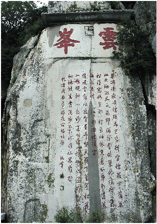 ……十一日至泰山,石径峻嶒,缓步登陟四十里。御帐崖瀑水悬流,五大夫枯松犹在岩畔,或亦后人继植者。入南天门,扪秦时无字碑,至孔子小天下处,真可收罗宇宙,畅豁襟怀,题“普照乾坤”、“云峰”诸字。宿泰山巅,月色清朗,赋诗遣兴。来日登日观峰,看扶桑日出。下山祀于岳庙。岳为五方之长,发生万物,故躬祀之,为苍生祈福。……