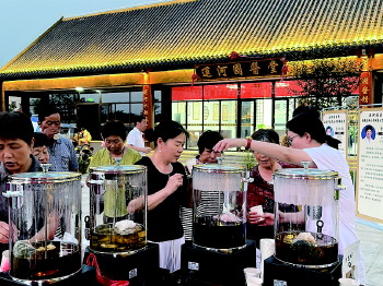 此外,医务人员们还为大家奉上了精彩的中医药文化节目,亲身示范中医传统养生功法八段锦,现场讲解动作要领及功效,将活动氛围一次次推向高潮。健康大讲堂内,医师们分享着中医养生知识,大家听得认真,纷纷掏出手机记录要点。一旁免费提供的养生茶,菊花枸杞的清甜、陈皮大麦的温润,更是让这份夏夜的关怀沁人心脾。