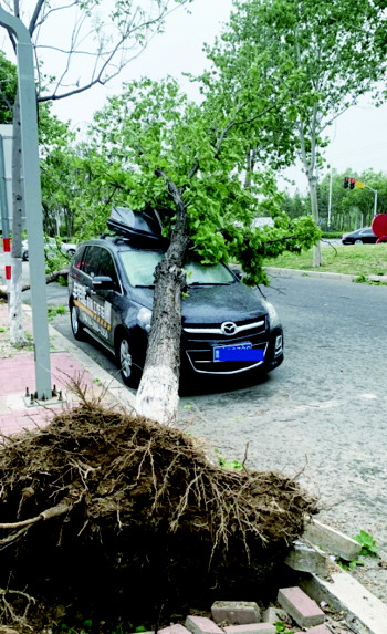 “当时车辆停放在新河路北侧一公共停车位上,绿化树被连根拔起,主干横砸在车顶上。”徐先生称,在重压之下,车顶凹陷变形,车顶行李箱也破裂严重。事发后,徐先生找到了德州园林部门,要求其承担意外事故带来的车辆损失。工作人员表示,园林部门已为绿化树木购买了保险,后续由阳光财险德州中心支公司负责理赔事宜。