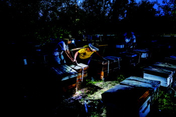 天一亮,路会超夫妇就围着蜂箱转,查蜜蜂、看产蜜。