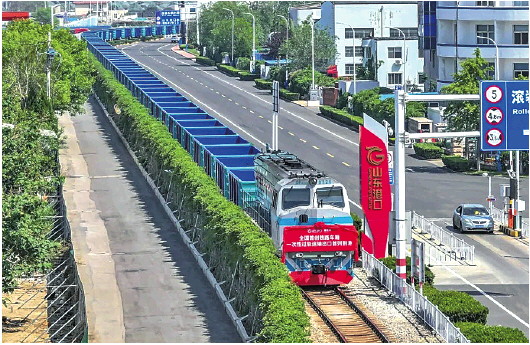 一次性过轨运输,是指企业自备货车在取得过轨运输许可证后,借助国家铁路开展的一次性货物运输。该模式下,货物无需公路装卸和转运,沿铁路直达港口,可有效降低装卸、仓储等中间环节的成本,推动各种交通运输方式深度衔接。 于洋 烟台报道 通讯员供图