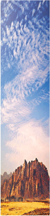 “热情”的阳光下,两辆“长城炮”疾驰在新疆吐和高速上。好长时间碰不上一辆车,好长距离看不到一棵树。目之所及,沙漠、戈壁、骆驼草……