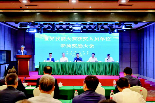市委、市政府专题召开世界技能大赛获奖人员单位表扬奖励大会,给予杨绍辉奖金50万元、教练团队奖金50万元、选手单位奖金20万元,切实让技能人才成为“香饽饽”。