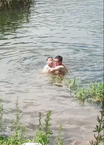 7月3日上午,从济南办完事返回夏津途中的邵广天一家三口,感觉时间尚早且天气炎热,10点半左右,经停济南玉符河畔,驻车停留,纳凉休闲,稍作休整。刚返回车边,打算拿桌椅的邵广天,突然听到不远处一位妇女的惊呼:“快来人啊,有人掉水里了,这是谁家的小孩……”他循声望去,目测距离自己二三十米的水域、一个孩子正在水中挣扎,头在水中一上一下,双手胡乱拍打着水面,情况十分危急。由于当时游玩的人多集中在景区北边浅水区域,景区南边人较少,加之流水声大,孩子微弱的呼救声未被更多人察觉。