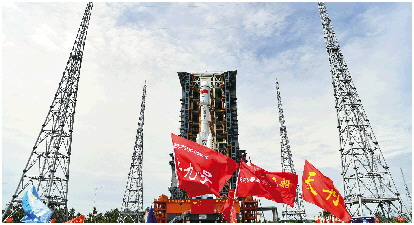 7月12日,船箭组合体垂直转运至发射区。 新华社发