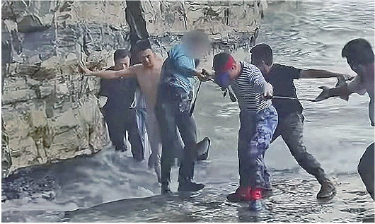 时间再往前,6月22日,在崂山风景区海边,当现役军人张小龙纵身跃入怒涛营救落水游客时,这场生命救援早已超越个体英雄的范畴。张小龙在湿滑礁石上摔倒又爬起、奋力游向落水者的同时,岸上群众已自发行动:有人脱下衣服与登山杖结成“安全绳”,有人手挽手形成人梯接应,更有两名黑衣游客跃入海中协助拖拽,一行人“破风斩浪”将游客从怒涛中拖回。素不相识的游客、路人用本能的善意完成了生命接力,让大家看到见义勇为从来不是孤独的逆行。