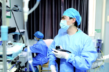 田芝雷为患者进行内镜治疗。
