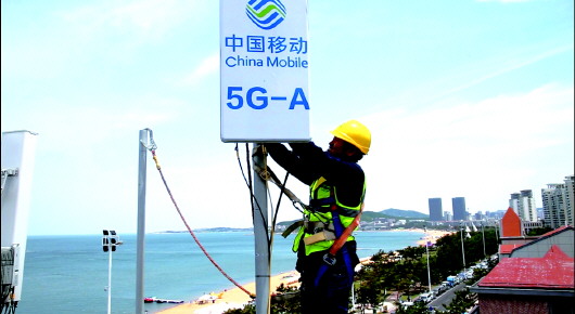 烟台移动网络优化员工正在部署5G-A站点,并开通3CC多载波聚合、RedCap等新功能。