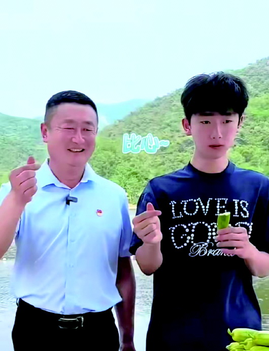 观水镇八甲村党支部书记张爱军(左)在直播。
