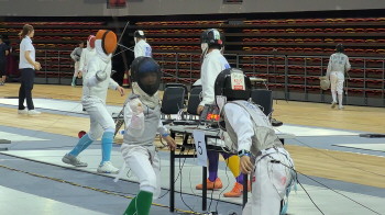 7月15日,“英派斯杯”青岛市第六届运动会“康力源杯”青少年组击剑比赛在青岛市民健身中心体育馆开赛,全市8支代表队三百余名青少年运动员报名参赛。击剑运动分为花剑、重剑和佩剑三种。近年来,青岛不断完善的赛事体系,激发了更多青少年对击剑运动的兴趣,培养了大量本地有潜力的青少年选手。