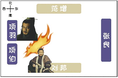这就是那场著名的“鸿门宴”上的座次安排。项羽设鸿门宴欲杀刘邦,将对方视为自己的囊中之物,并不把对方作为尊贵嘉宾看待,因此在席位的安排上,把己方放在尊位,对方则在卑位。