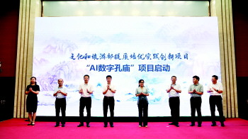 于凌代表联合体理事会秘书处宣读了联合体2025年工作计划,阐述了重点建设项目和实践举措。随后,与会领导嘉宾上台共同开启了依托联合体获批文化和旅游部立项的提质培优实践创新项目“AI数字孔庙”启动仪式。