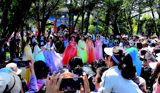 这种分散式、高频次的小场景演出形式,有效串联起沿途核心景点,不仅分散客流,提升高峰期旅游承载力,还巧妙地衔接了餐饮、购物等商业空间,延长了游客停留时间,拉动了二次消费,让整个景区“步步有景、处处有戏”,呈现出氛围浓、人气旺、消费热、秩序好的良好态势。